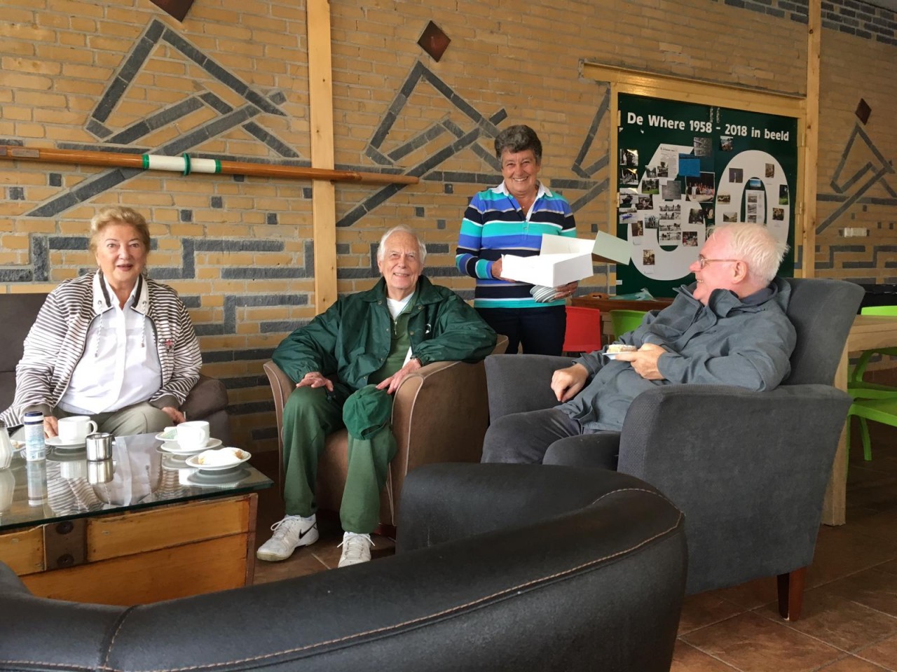 Na een door iedereen enthousiast ingezet "Lang zal hij Leven" deelde Ria de door Aris meegebrachte Hazelaartjes uit.